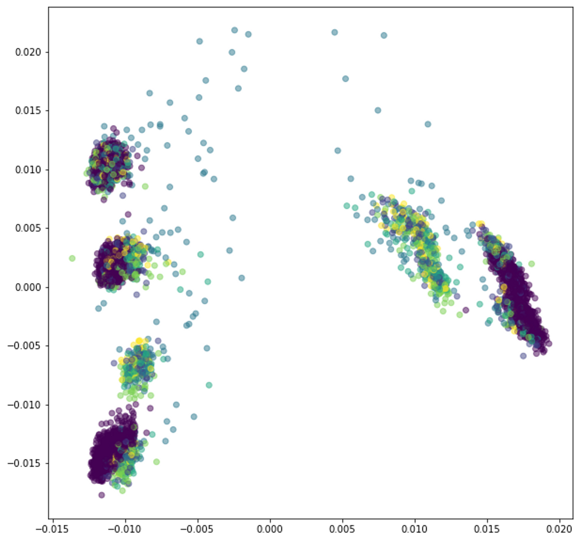 Le résultat de ce test donne bien des clusters identifiables, mais qui correspondent aux différentes vues du dataset, qui sont plus facilement reconnaissables par le modèle que les défauts.