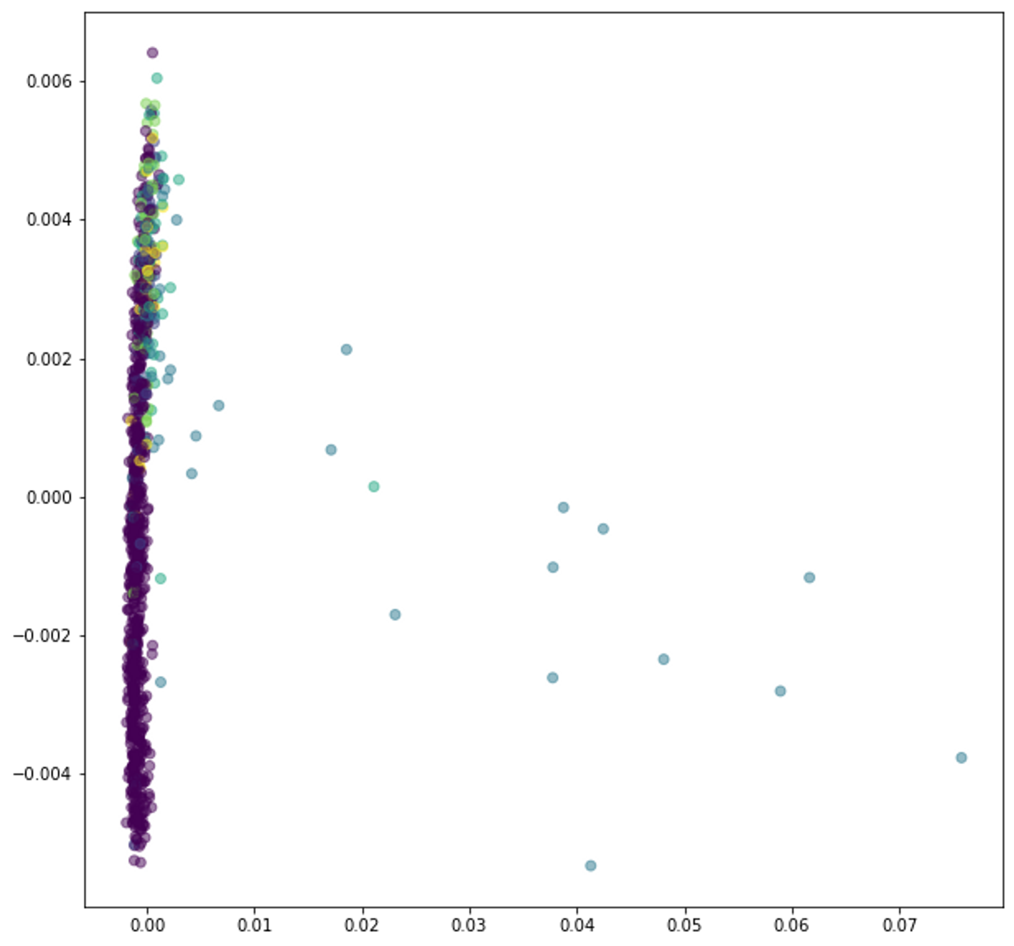 Dans ce cas, l’étape de vectorisation ne converge pas et ne donne pas de séparation entre les deux classes.