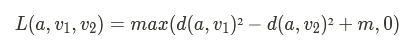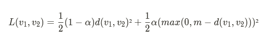 Intuitivement, cette fonction objectif pénalise deux vecteurs de la même classe par leur distance, tandis que deux vecteurs de classes différentes ne sont pénalisés que si leur distance est inférieure à m.